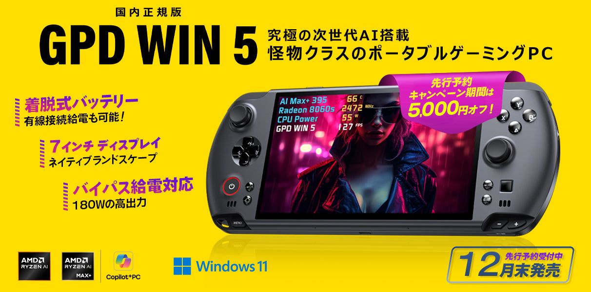 GPD WIN Mini 2025(Ryzen AI 9 HX 370/Ryzen7 8840U)国内正規版 天空オリジナルパッケージ